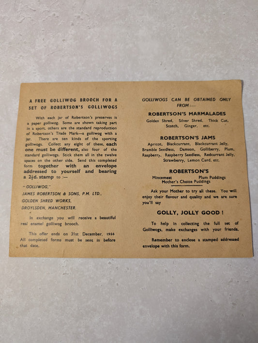 Sold out1950s Robertsons Order Form