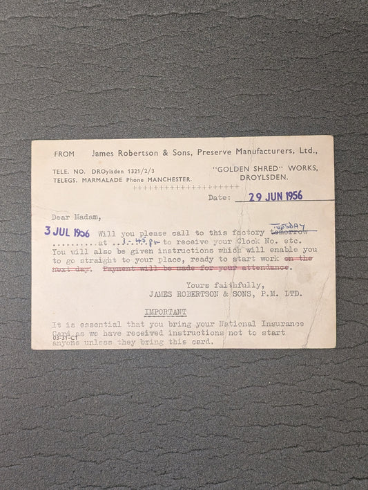 Unique Robertsons Job Offer on Post Card