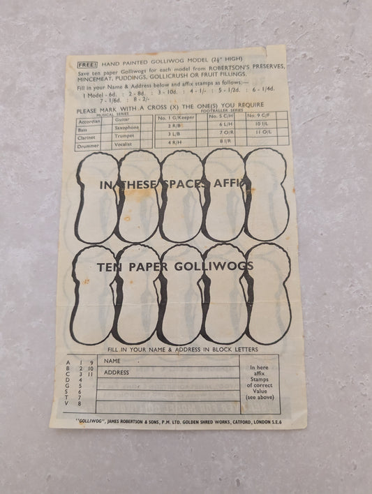 Original Robertsons 6" 80s Card Cut Out Golly