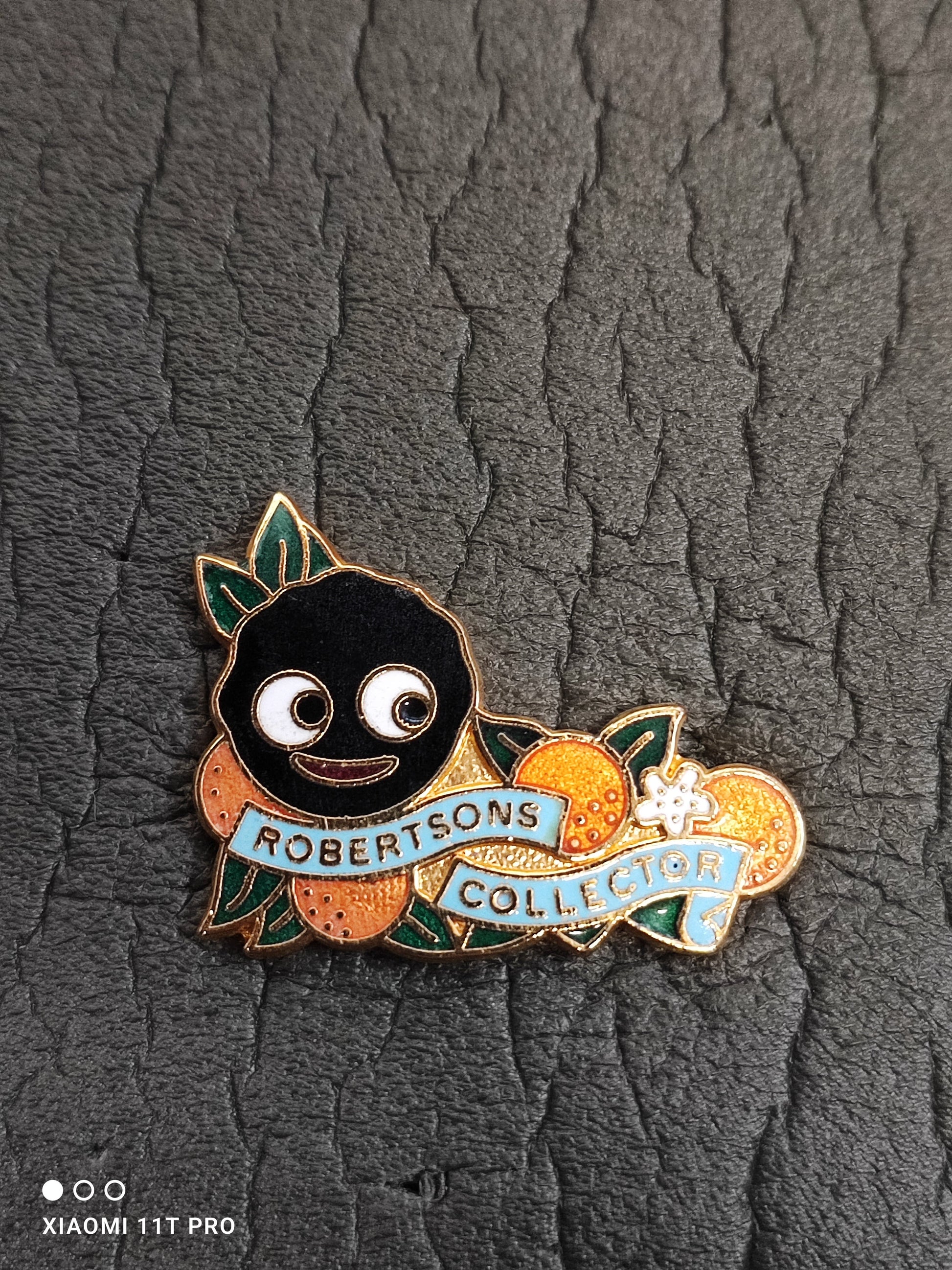Collectors Enamel - Oranges Light Blue Scroll